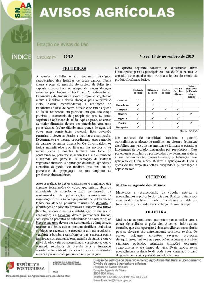 Visagricola > Privado: Boletins Agricolas > Boletins Agricolas Dão > Aviso Agricola Dão Nº16/19
